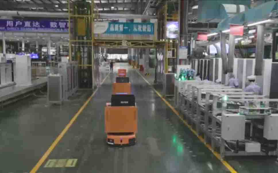 为车载冰箱物流配送打造的智能解决方案,,,包含产中物流通过潜伏举升AMR搬运至线边,,产后成品物流智能仓储,,,流程包含产中物流智能齐套入库,,线边安灯叫料AMR智能配送至线边,,,成品入库、、出库,,通过无人堆高车机器人,,智能仓储管理替代人工作业管理,,实现更高存储、、、、更高效率、、、更具柔性化的解决方案。。。